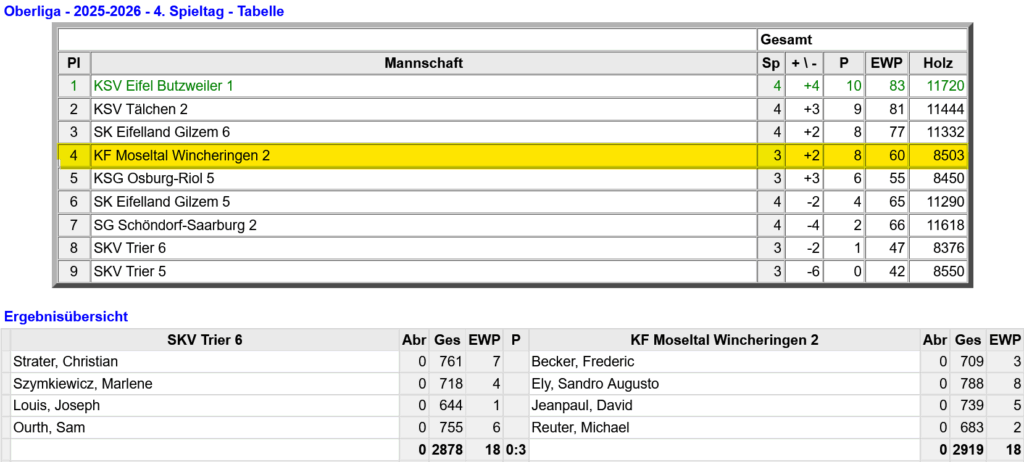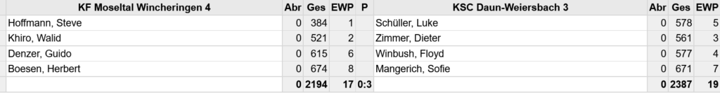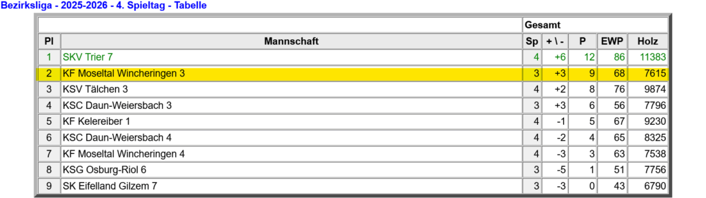 Unsere 3. spielt zur Zeit in der Klasse sehr gut mit und wirr wollen hoffen, dass der Trend noch anhält.