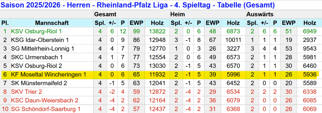 Die Aktuellen Tabellenstände sind wie folgt